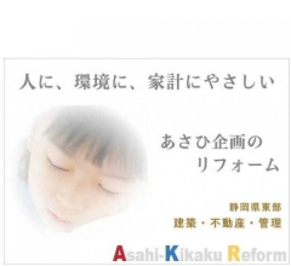 静岡県三島市、長泉町近郊でリフォーム、アパートの空室対策をご検討の方、【株式会社あさひ企画】にご相談ください! 住宅リフォームから、アパートのリノベーション、事務所・店舗の改装など、安心価格、安心施工、アフターフォローまで誠意を持ってバックアップいたします。 私たちの仕事に必要なのは「やさしさ」だと考えます。 人に、環境に、家計にやさしいリフォームを! 【株式会社あさひ企画】にお気軽にご相談ください!